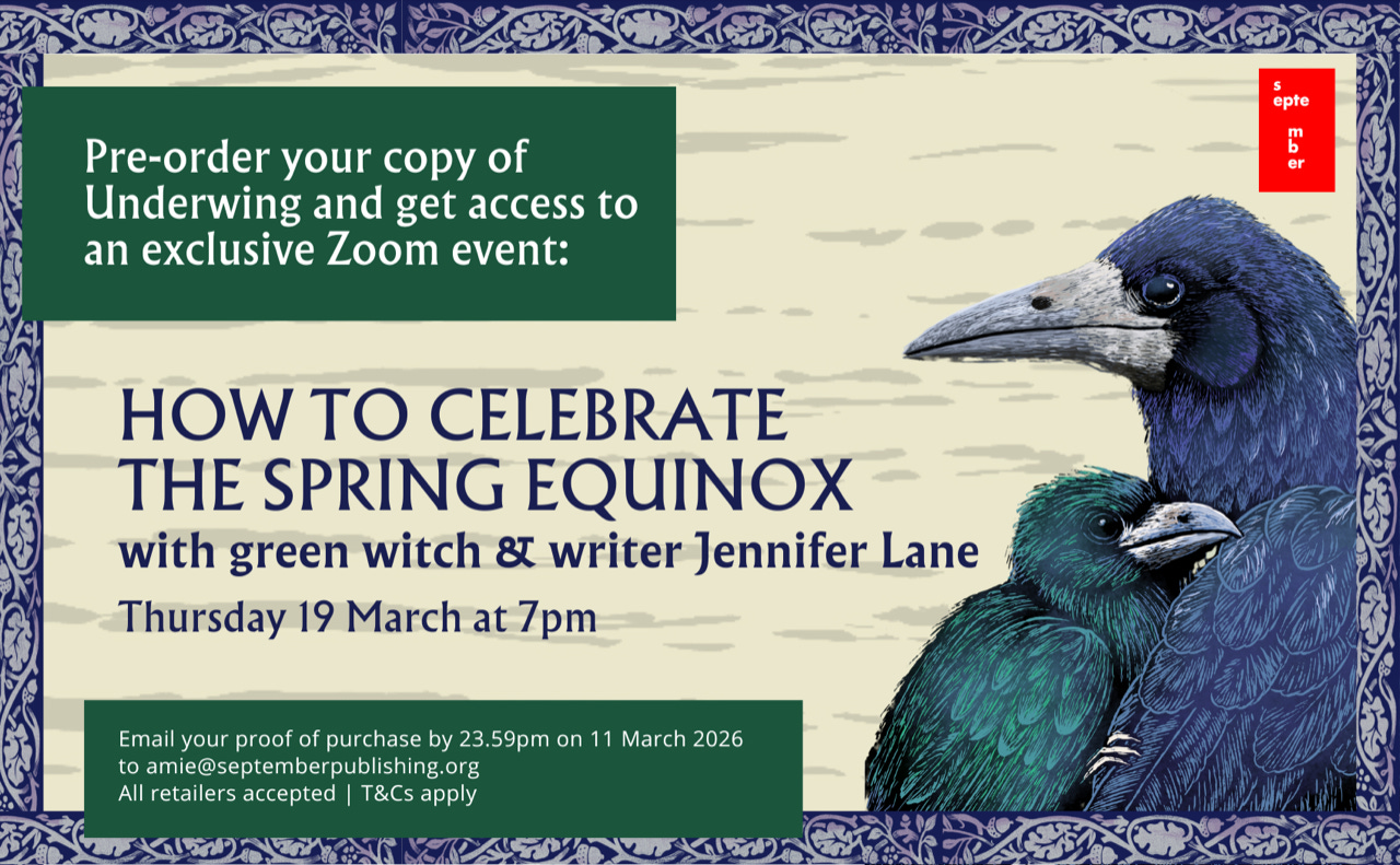 If you have already pre-ordered the book, this event is for you too! Pre-order a copy of Underwing and email your proof of purchase to amie@septemberpublishing.org by 23:59 on 11th March to get your invite to this online spring equinox event 🌱🤍